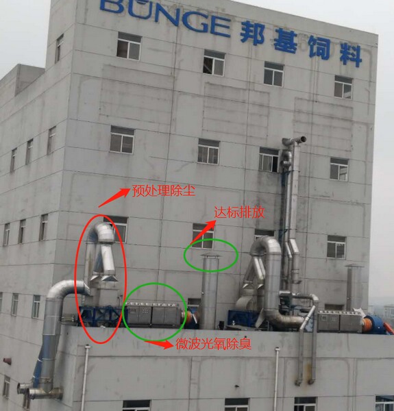 1、項目簡介:邦基(南京)農(nóng)牧有限公司隸屬于世界500強企業(yè)邦吉集團。主要生產(chǎn)蝦料、螃蟹料、畜禽料等配合飼料。公司有兩條膨化線主要生產(chǎn)蝦料、螃蟹料,生產(chǎn)過程中烘干、冷卻工藝段產(chǎn)生大量異味廢氣。邦基公司本著為社會負責任的態(tài)度,2016年8月與藍雨禾開始技術(shù)交流、論證。經(jīng)過多次考察、嚴格篩選,最終選擇藍雨禾設計并承建該項目。該項目于2017年4月初建成投運。自投運以來始終保持系統(tǒng)穩(wěn)定、除臭效果優(yōu)異、設備處于良好運行狀態(tài),獲得了客戶的高度評價。該項目是南京飼料廢氣除臭、南京飼料廢氣處理的標桿工程。